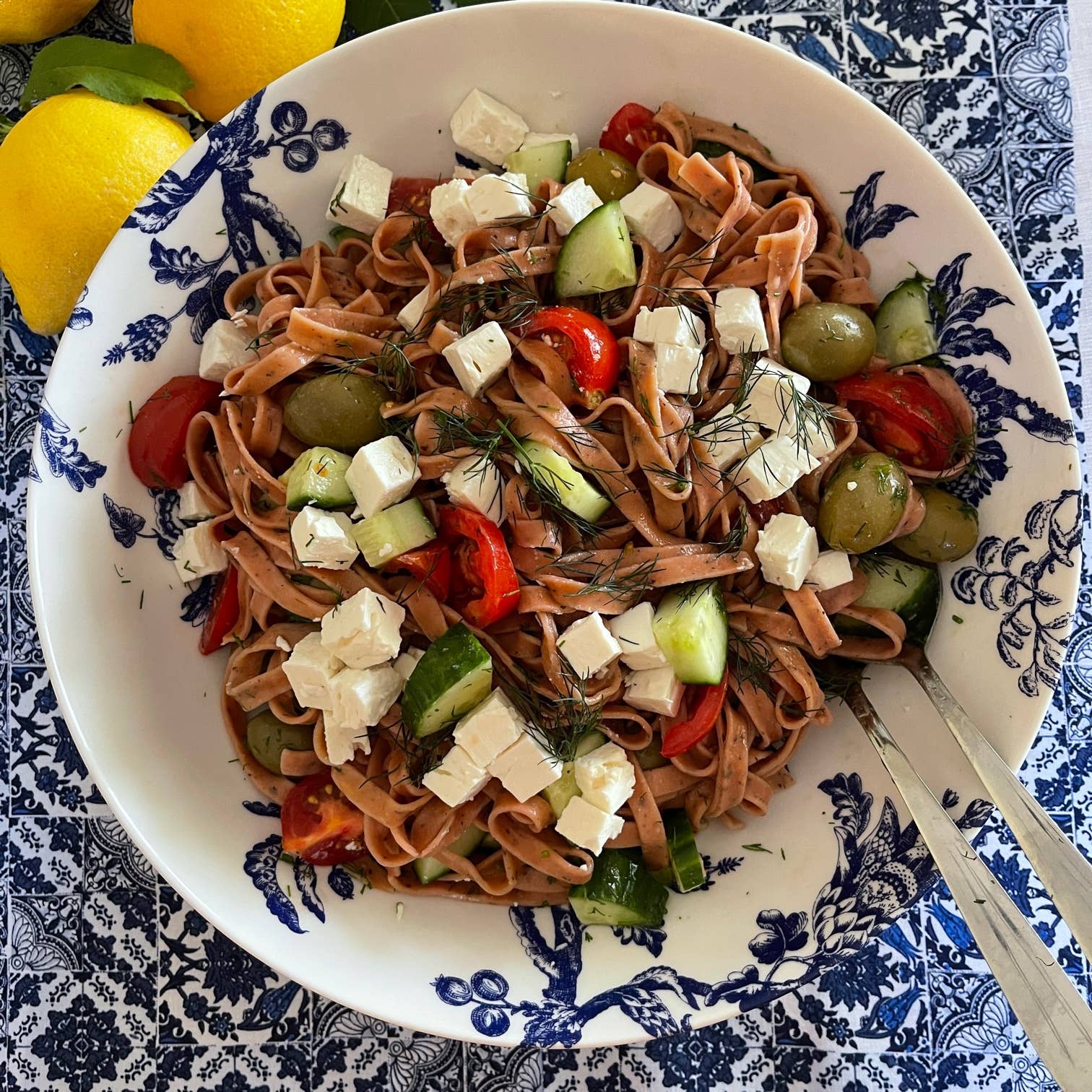 Ingredients: unbleached wheat flour, tomato powder, dried basil, and beet powder and water